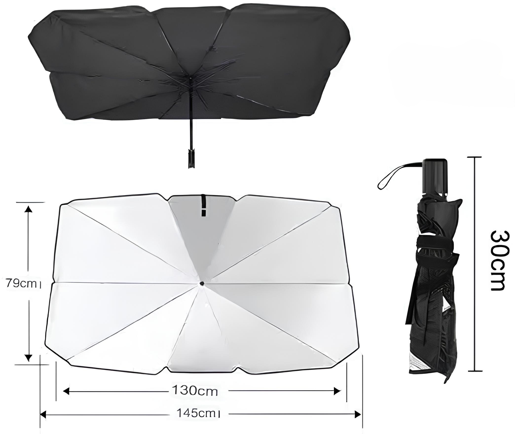- Kolay Kullanım: Şemsiye tasarımı sayesinde kolayca açılıp kapanabilir ve ön cama yerleştirilebilir.